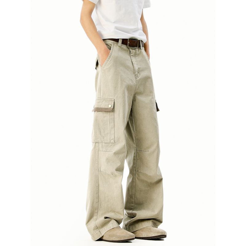51 Hip-hop American Vintage Multi-pockets Cargo Casual Pants Men and Women Distressed Washed Loose Straight Wide Leg Trousers