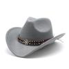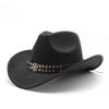High-End Metal Belt Brown Western Cowboy Hat Woolen Felt Hat Men'S And Women'S Top Hat Outdoor Riding