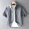 Summer American Casual Short-Sleeved Shirt for Men, Loose Fit for Big and Tall Guys, Plus Size Work Shirt Jacket, Washed Pure Cotton
