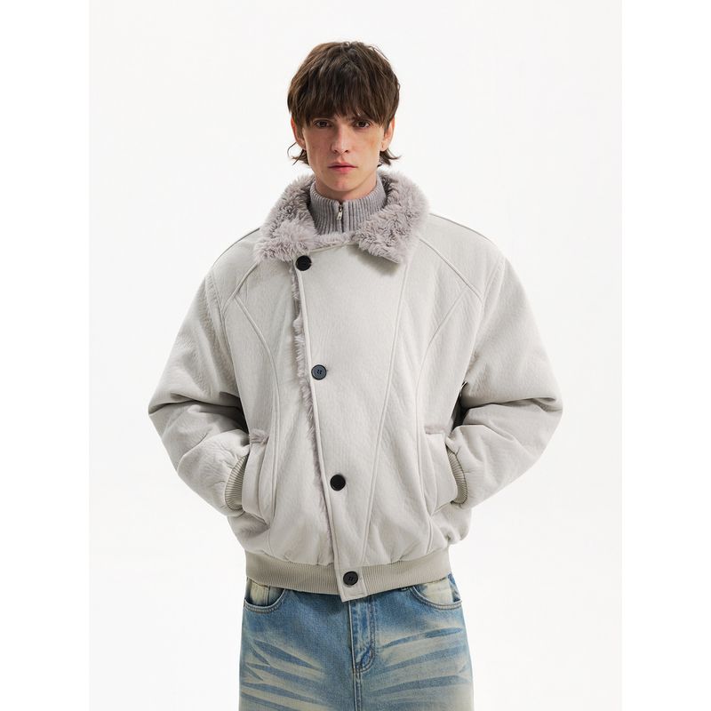 Blaexit Retro Faux Rabbit Fur Collar Mountain Carving Jacket Men's Thickened Winter Cotton Coat Textured Suede Jacket