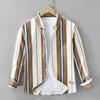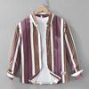 Spring Japan Fashion Retro Stripe Color Matching High-Grade Pure Cotton Long Sleeve Shirts Men's Shirt Outerwear Hong Kong British Style