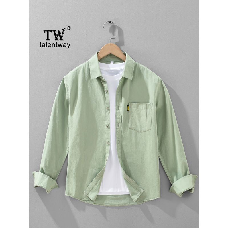 Spring and Autumn Japan Fashion Hong Kong Style Retro Long Sleeve Shirts Men's Washed Cotton Loose Casual Shirt Outerwear 100% Cotton
