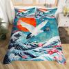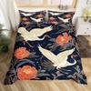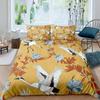 Crane Duvet Set Japanese Tree Bedding Three-Piece Room Decoration Animal Ukiyo-E Style Quilt Cover