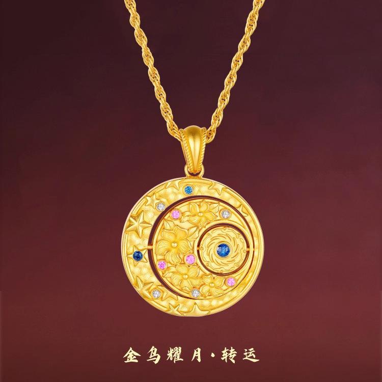 Ancient Craft Oriental Blessing Golden Crow Yaoyue Transit Pendant Yellow Gold Three-Dimensional Star Divine Bird Osmanthus Pattern Necklace