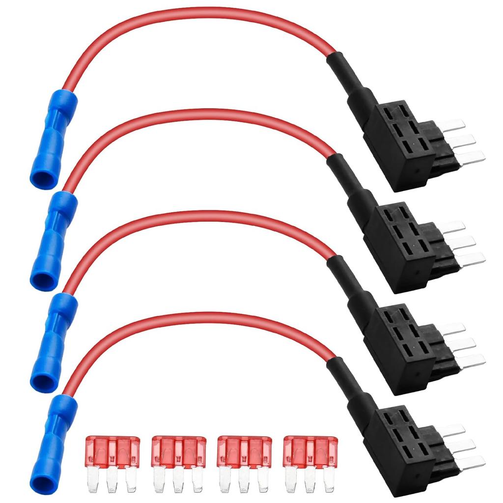 4 Pack Micro 3 Fuse Tap, Add A Circuit Adapters, Expandable Blade Style 12V Fuse Holders For Underglow Lights, Interior LEDs & Car Accessories (Red