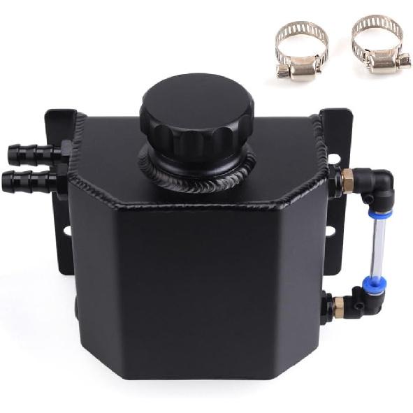 RASTP Universal 1L Coolant Overflow Tank, Aluminum Coolant Radiator Tank,Reservoir Expansion,Black
