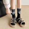 Flocked Cartoon Animal Socks Autumn Mid-Leg Socks Splicing Fake Two-Piece Stacked Socks Gray Socks