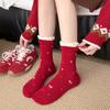 Bow Stripe New Year'S Big Red Socks Women'S Mid-Tube Socks Pure Cotton Edge Horse Year Stockings