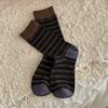 Contrasting Striped Stacked Socks, Women'S Mid-Leg Socks, Trendy Cotton Socks, Summer Thin Retro Sports Stockings