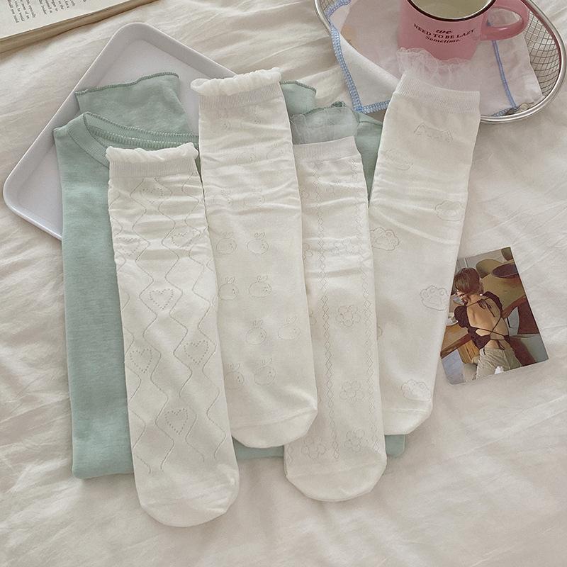 Summer Thin White Extremely Anti-Boneless Mesh Medium Tube Socks Children'S Lace Versatile Girls Pile Small White Socks