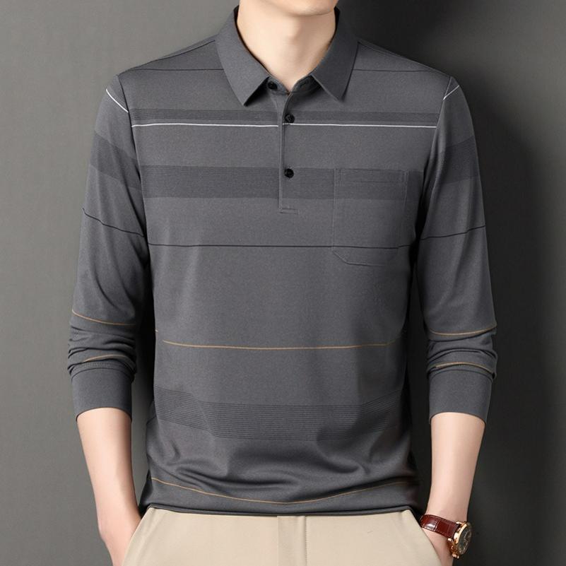 Spring Thin Long-sleeved T-shirt Men's Lapel Mercerized Cotton Dad Wear Striped T-shirt Men