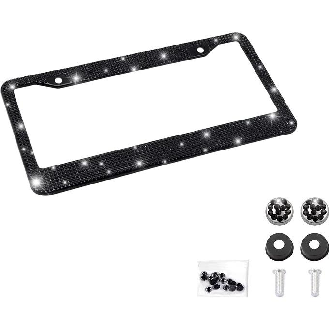 Bling Car License Plate Frame, Handcrafted Crystal Stainless Steel License Plate Frame, Sparkly, Durable, Universal Fit, Car Accessories For Girls,
