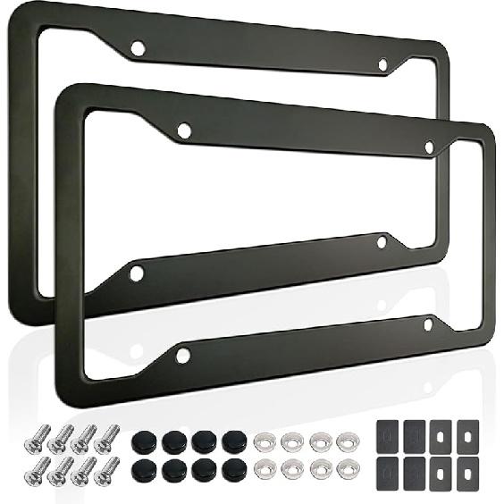 Carbon Fiber License Plate Frames- 2 Pack Black Aluminum Front & Rear Auto Car Tag Holder, Heavy Duty Bracket With Mount Hardware, Screws Caps,