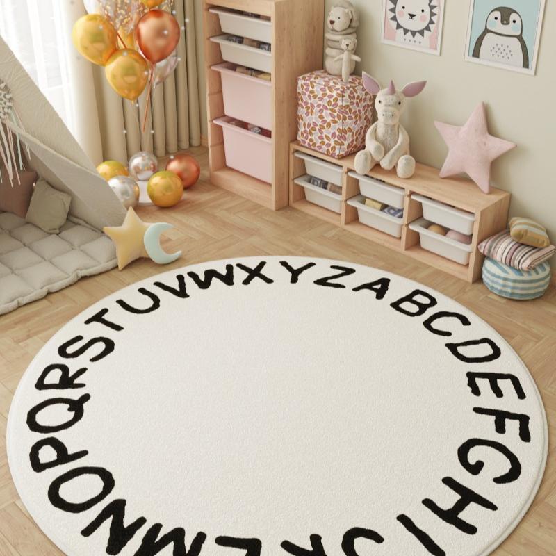 Educational Round Kids Rugs Alphabet Animal Design Rainbow Pattern Colorful Learning Carpets for Childrens Room Decor