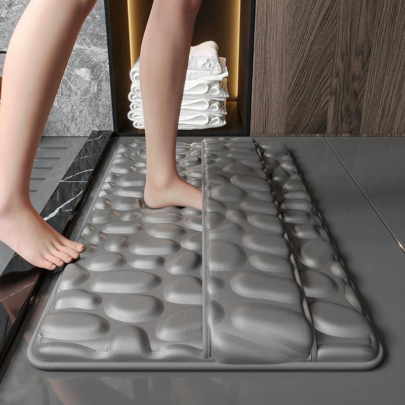 Pebble Design Memory Foam Ice Silk Bath Mat, Quick-Dry Bathroom Rug with Non-Slip Backing, Soft & Absorbent for Shower, Toilet