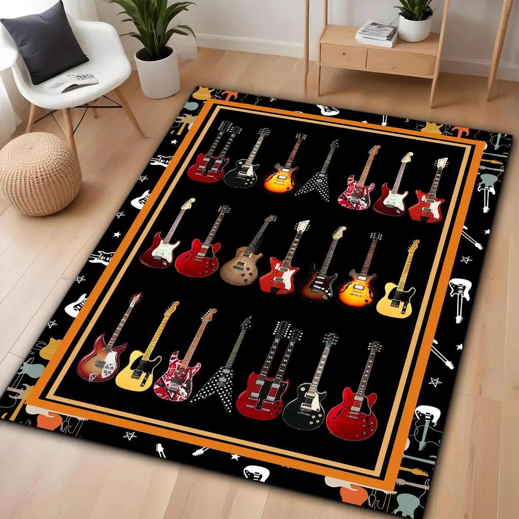 Guitar Carpet for Living Room Decoration Large Area Comfortable Resistant To Dirt Non-slip Rug Flannel Bedroom Floor Mat