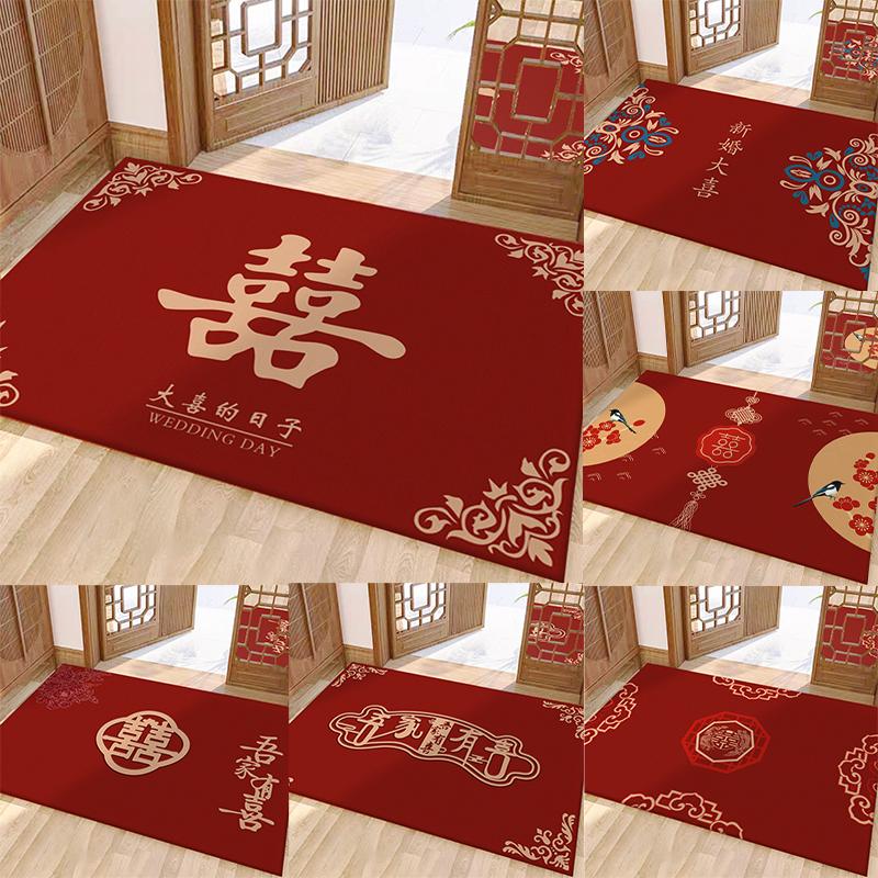 Chinese Wedding Themed Door Mat with Double Happiness Pattern Floor Mat for Home Entrance Decor Adding Festive Blessings