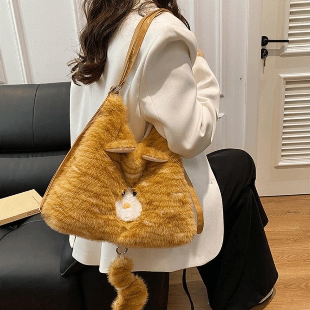 Animal Furry School Bag Zipper Cartoon Daypack Portable Cat Plush Backpack Girls