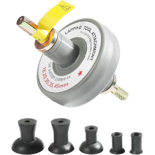 [Instructions] Apply a thin layer of engine valve grinding agent (not included) around the valve, install the valve in the valve guide, firmly press the correctly sized valve suction cup tool onto the valve head, and then slowly rotate the grinding tool with an electric drill (not included) until a suitable smoothness is achieved.