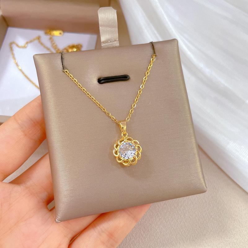 Titanium Steel Light Luxury Temperament Gorgeous Full Diamond Rotating Zircon Necklace Female Versatile Collarbone Chain Titanium Steel Chain