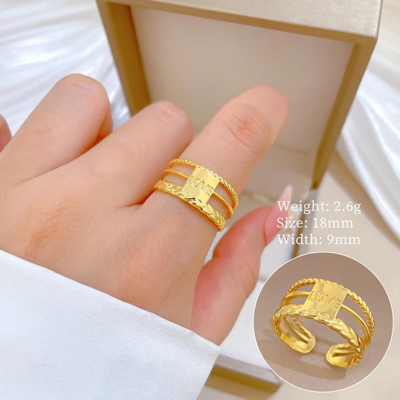 Real Gold Minimalist Love Ring Opening Adjustable Simple Jewelry Japanese Ring Couple Ring