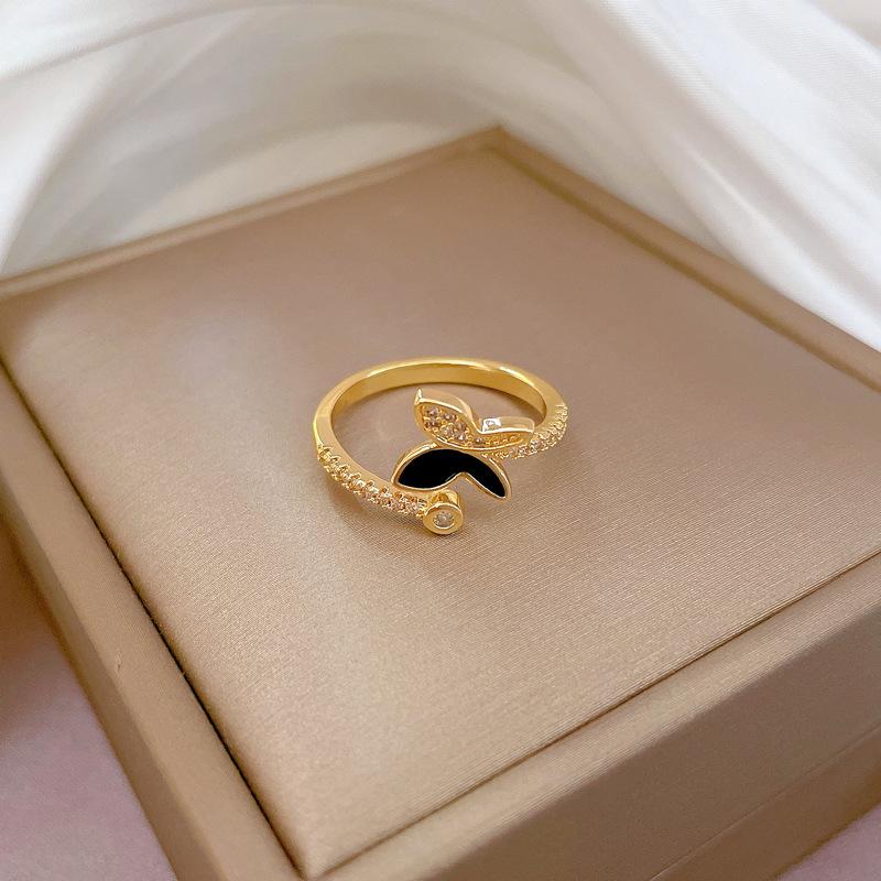 Real Gold Dripping Oil Butterfly Full Diamond Ring Opening Adjustable Simple Jewelry Japanese Ring Couple Ring