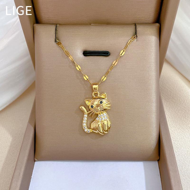 Black-Eyed Cat Zircon Light Luxury Temperament Gorgeous Full Diamond Necklace Female Versatile Collarbone Chain Titanium Steel Chain