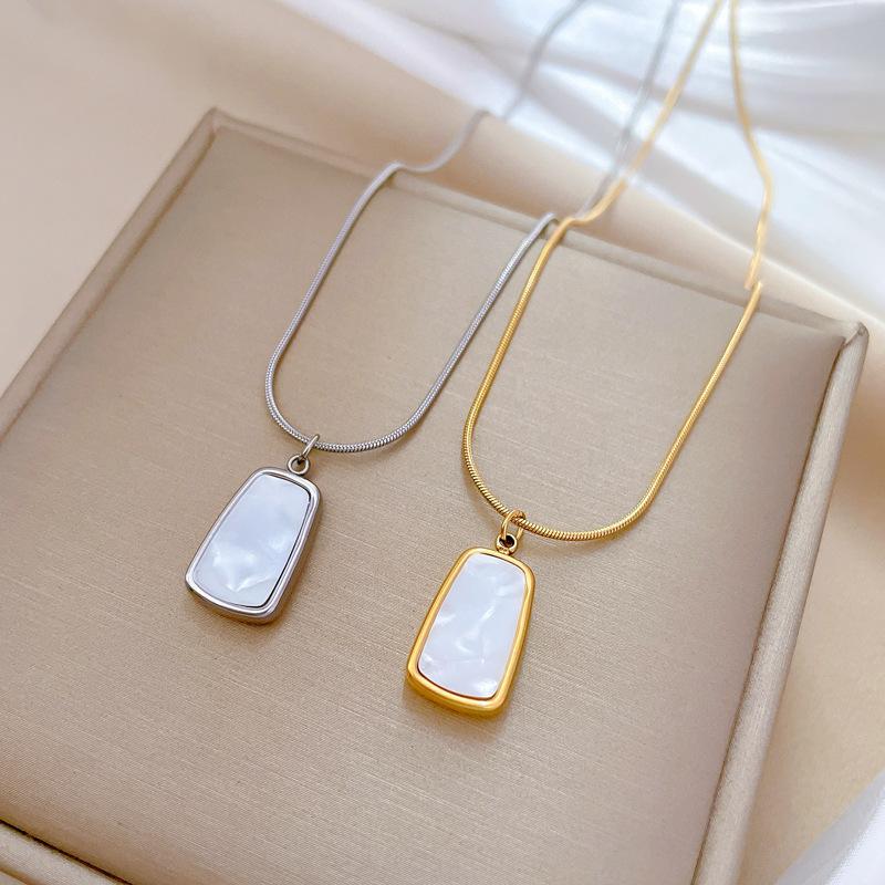 Square Shell Snake Bone Chain Furnace Real Gold Necklace Female Collarbone Chain With Jewelry