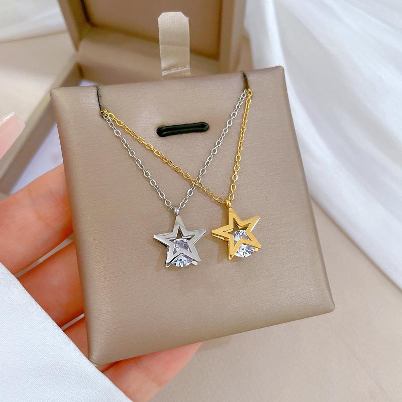 Pentagram Zircon Minimalist Wind Furnace Real Gold Necklace Female Collarbone Chain Accessories