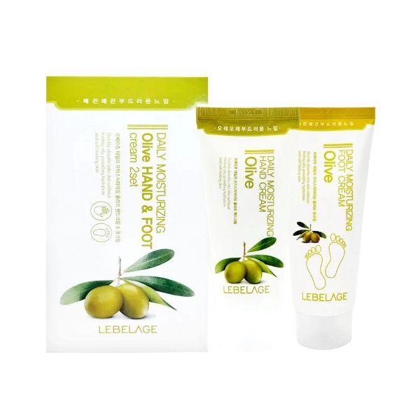 The LEBELAGE Daily Moisturizing Olive Hand & Foot Cream Set delivers deep nourishment and hydration for both hands and feet. Formulated with olive extract, the duo softens rough skin, restores moisture, and provides lasting comfort. Ideal for everyday care, this set keeps the skin smooth, healthy, and well-moisturized with a gentle, clean finish.