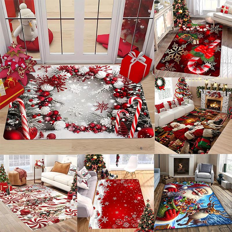 Merry Christmas Theme Rug Festival Carpet for Live Room Bedroom Rug Soft Doormat Large Area Rug Welcome Mat Home Decoration