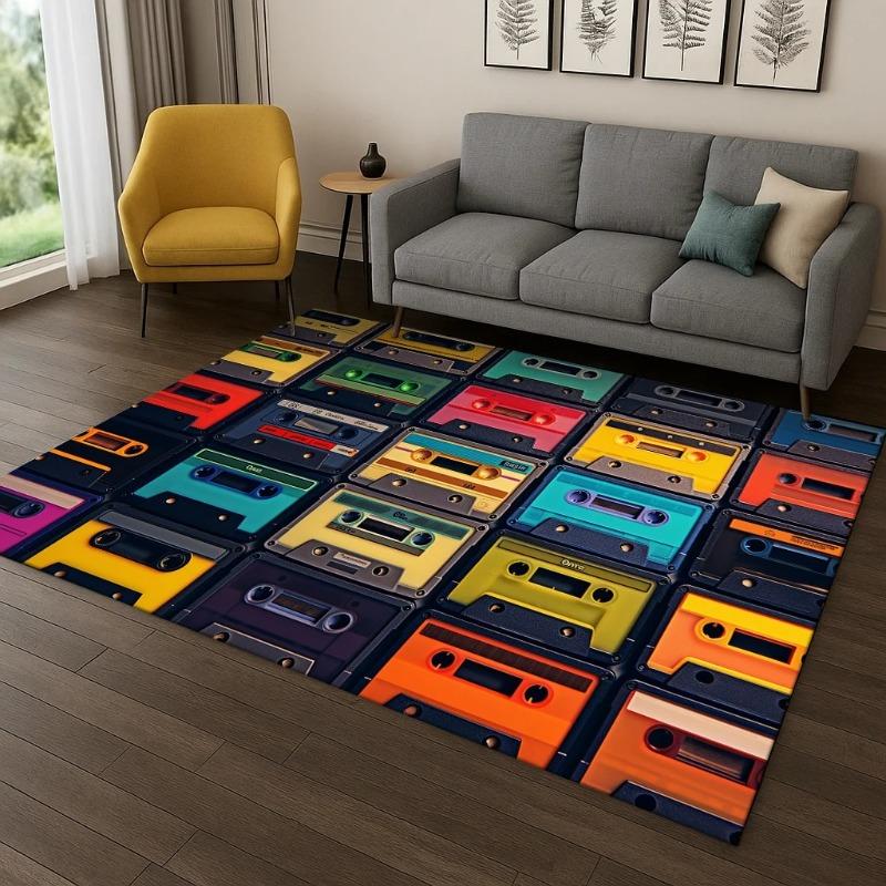 Classic Cassette Tape Music Retro Carpet Rug for Home Bedroom Living Room Sofa Doormat Kitchen Decor,Kid Game Non-slip Area Rug