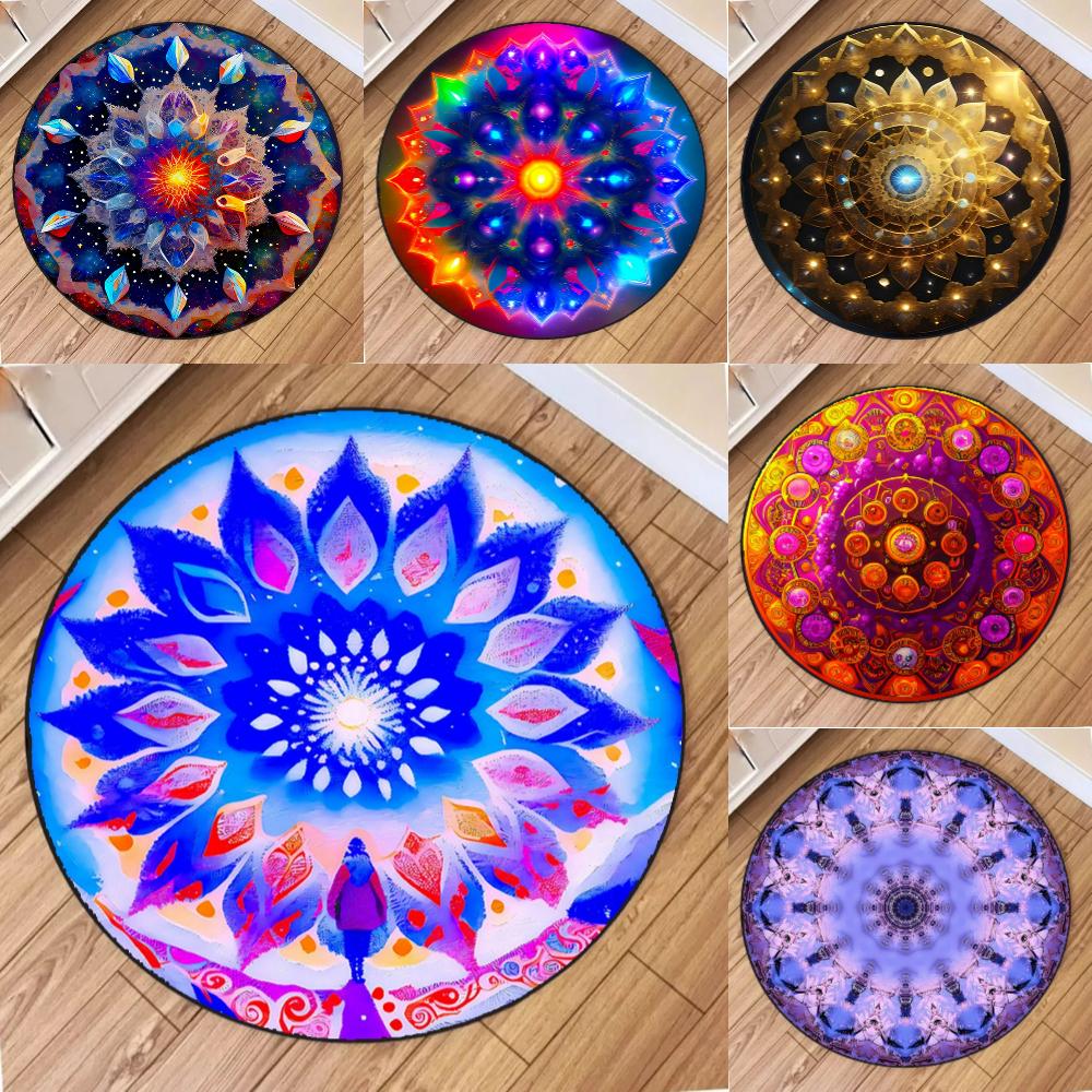 Colorful Mandala Printed Yoga Round Rug Girls Living Room Sofa Rug Home Bedroom Bedside Soft Rug Coffee Table Mat Reading Use