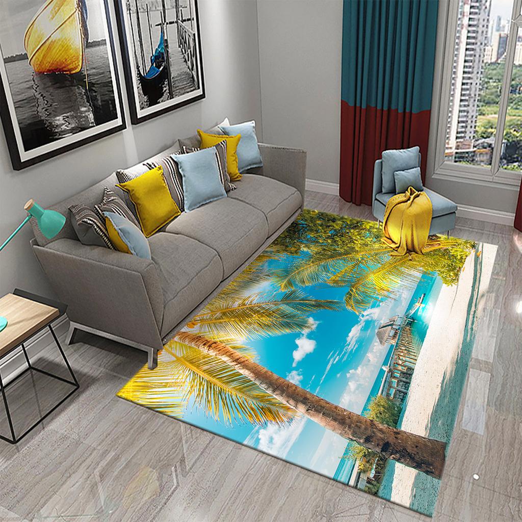 3D Tropical Island Ocean Beach Print Carpet for Kitchen Bathroom Living Room Bedroom Non-slip Absorbent Modern Home Decor Carpet