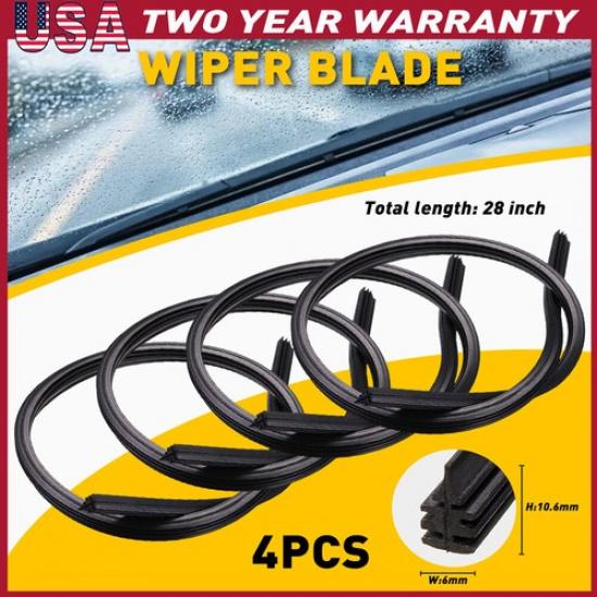 4PCS 28" 6Mm Car Bus Rubber Universal Frameless Windshield Blade Wiper Refill