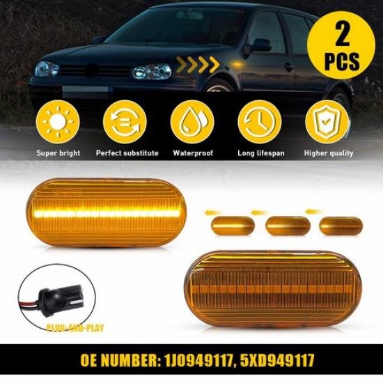 2 Front LED Side Marker Amber Light Sequential For Volkswagen 2000-2004 Golf MK4