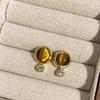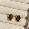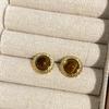 Round Tiger's Eye Stone Earrings Autumn Winter Retro Atmosphere Temperament Fashion Personality Design Women's Versatile Daily Earrings