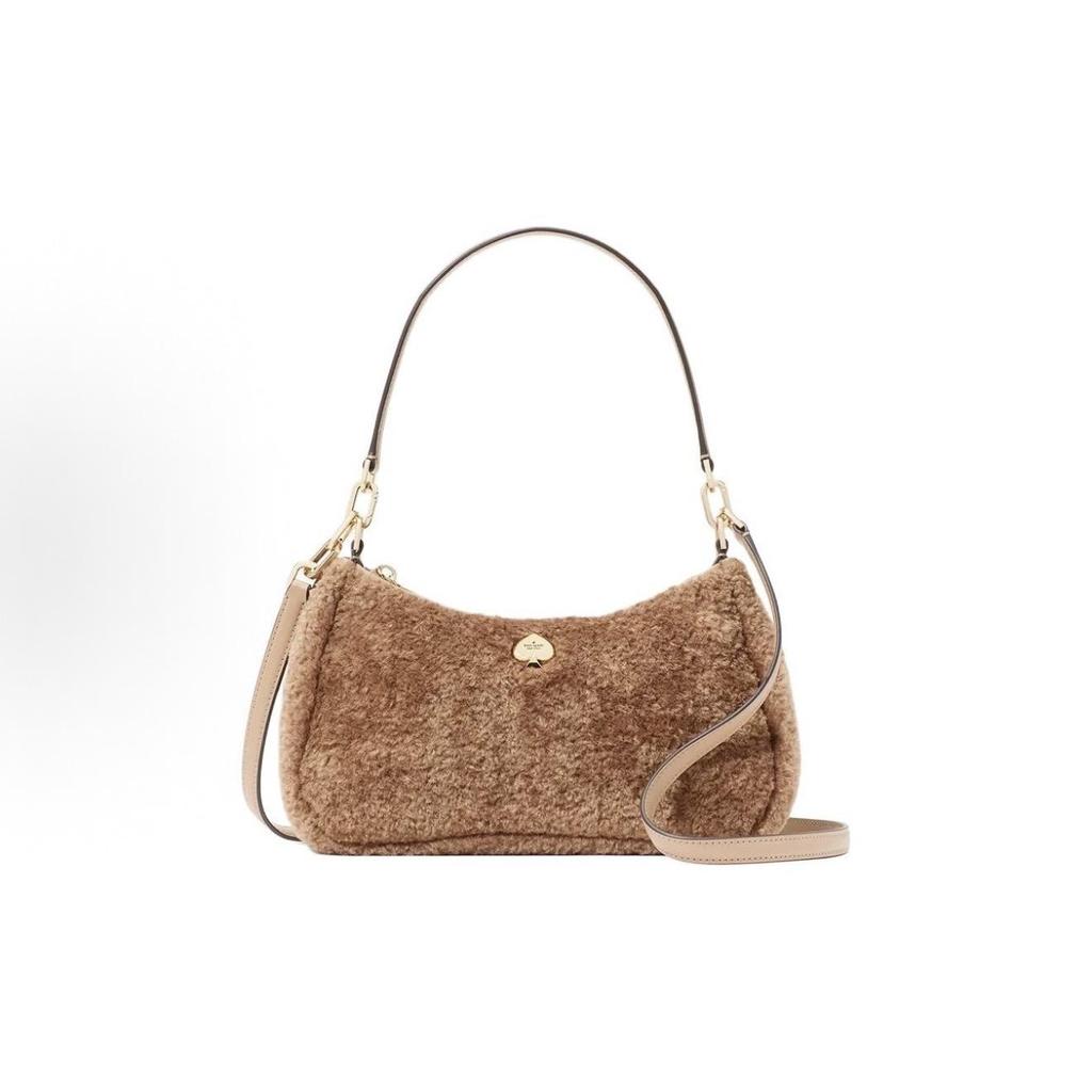 Kate Spade Ellie Embroidered Logo Zipper Closure Faux Fur Handbag Crossbody Shoulder Bag Small Women's Light Tan