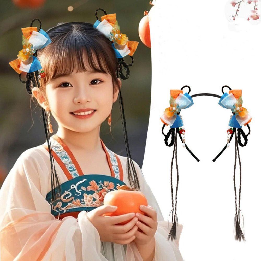 Tassel Children Wig Headband Flower New Year Hair Accessories Bow Princess Hairband Girls