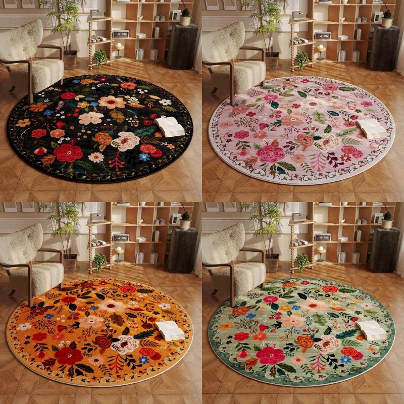 European Bohemian Pastoral Style Comfortable Circle Soft Carpet Colorful Floral Decorative Rugs Bathroom Anti-slip Door Mats