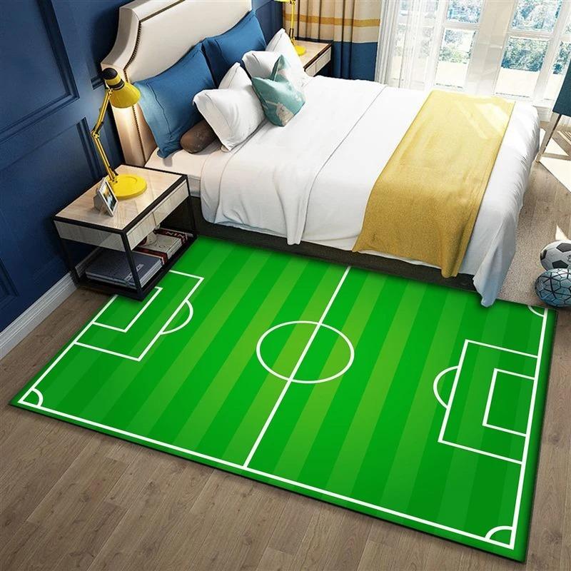 Football Field Theme Area Rug Green Grass Pattern Living Room Bedroom Kids Room Sports Decor Carpet Home Decoration Mat
