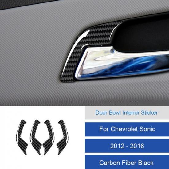 4x Carbon Fiber Door Handle Bowl Decoration Cover For Chevrolet Sonic 2012-2016