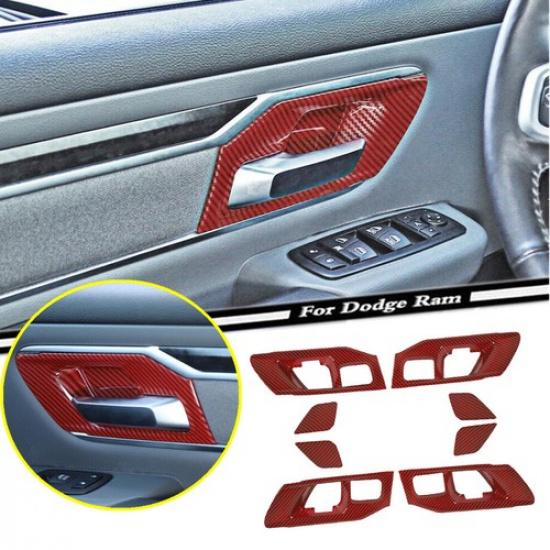 For -2024 Dodge RAM 1500 Red Carbon Interior Car Door Handle Bowl Cover Trim