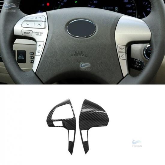 2*Carbon Texture Steering Wheel Button 4xHole Cover For Toyota Highlander Camry