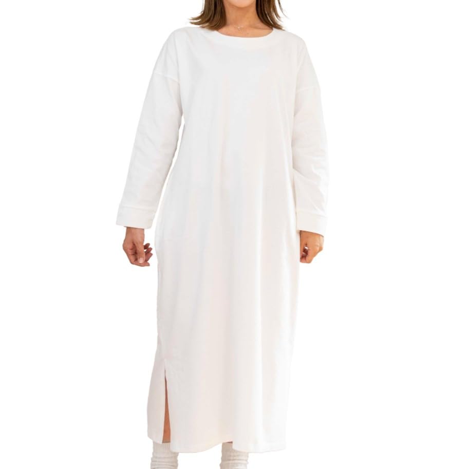 Spring Loose Large [nikalife] Women's Dress, Fit, 100% Cotton, Loungewear, (Small, White)