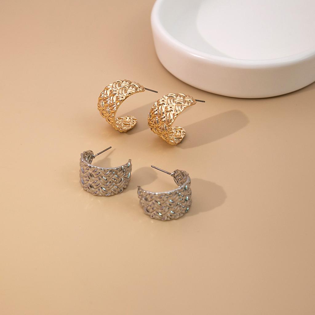 Light Luxury Pleated C-Shaped Stud Earrings, Niche Design Earrings, Metal Fashion Semi-Round Earrings