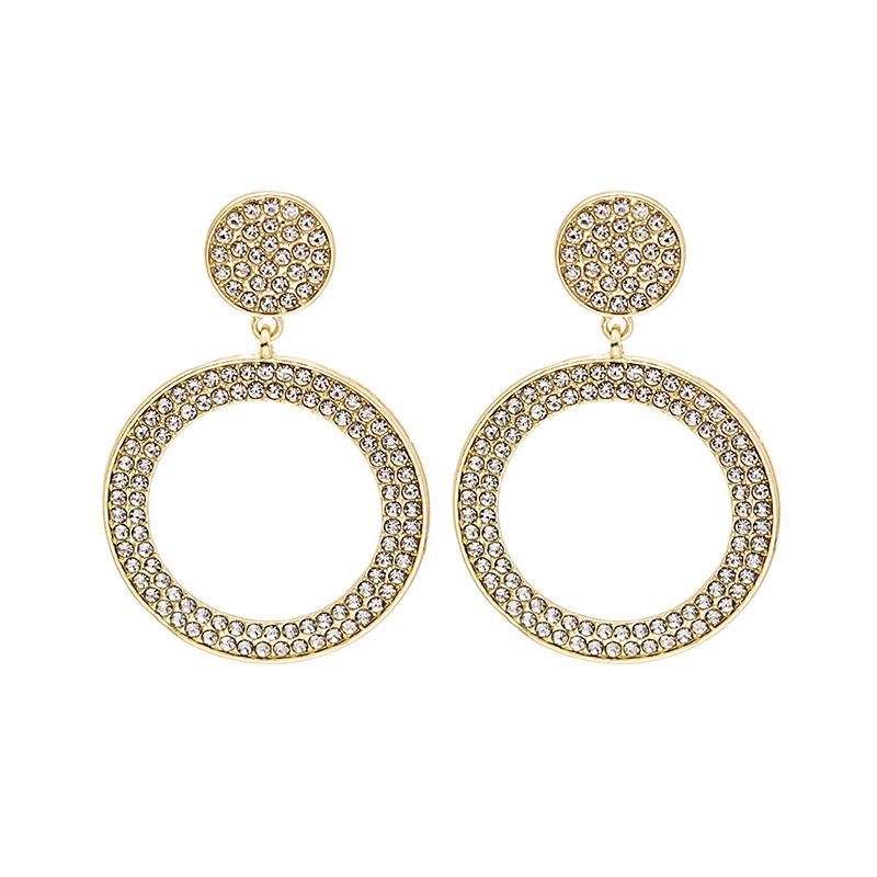 Exaggerated Super Flash Full Drill Geometric Hollow Circle Earrings Atmospheric Round Stud Earrings