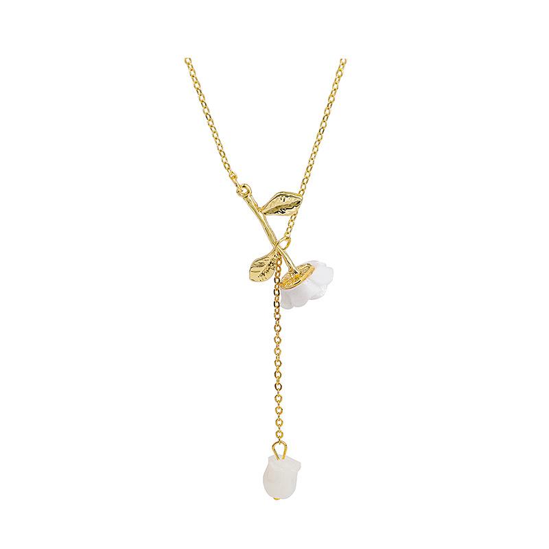 French Elegant Rose Necklace Super Fairy Spring Gentle Water Drop Pendant White Girl Sweet Clavicle Chain