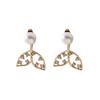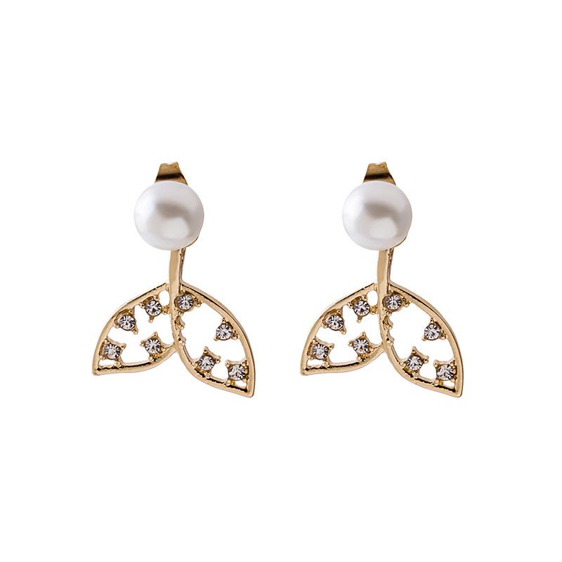 925 Hollow Fishtail Diamond-Encrusted Girl Earrings, One Pair Of Pearl Stud Earrings With Rear Hanging.