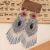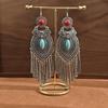 Bohemian Turquoise Long Fringed Stud Earrings Retro Imitation Miao Ethnic Style Earrings